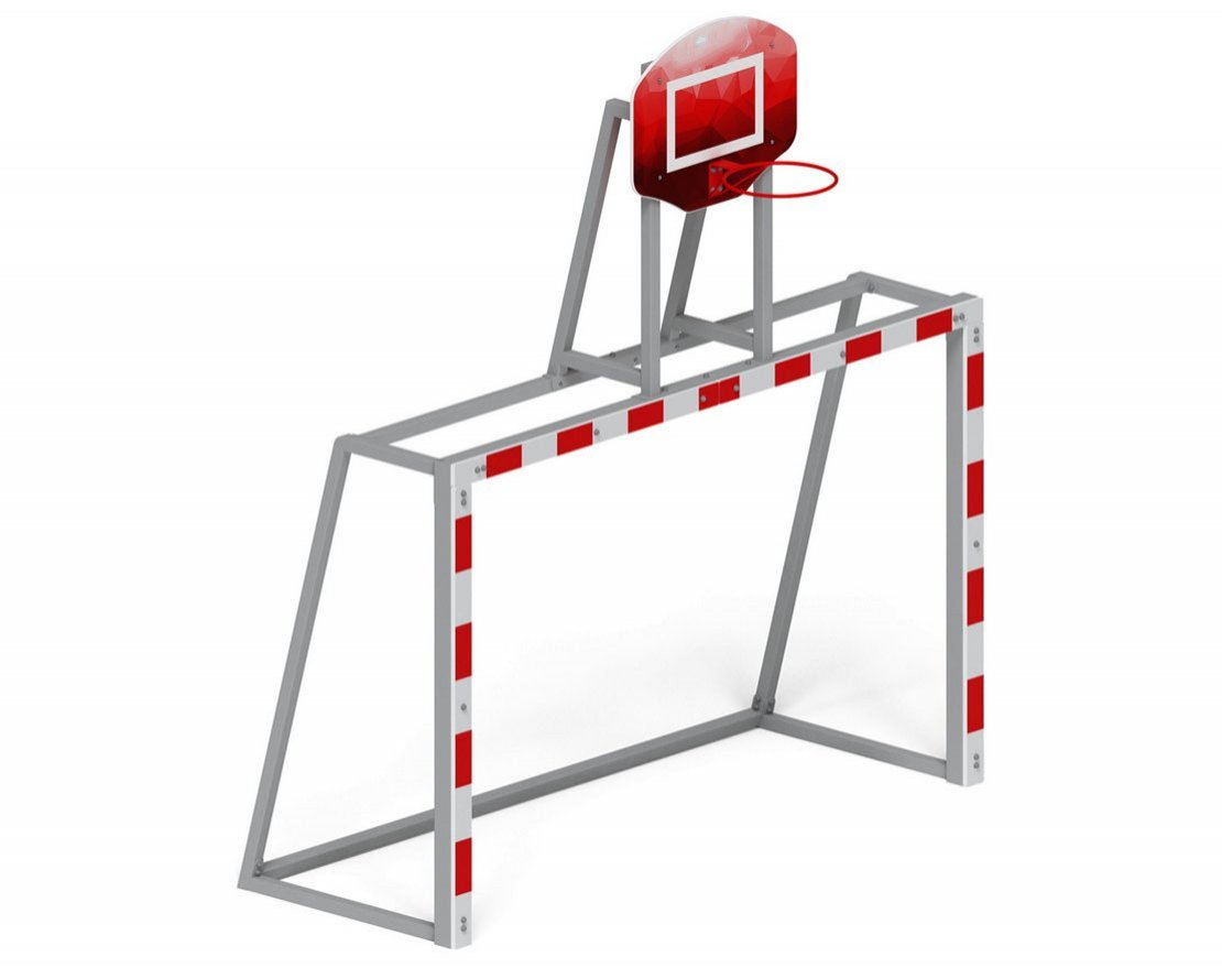Ворота для мини-футбола с баскетбольным щитом для уличной детской площадки отлично подойдут для любой детской площадки, расположенной во дворе, школе, детском саду или парке. Ворота полностью соответствуют ГОСТам по безопасности, имеют все необходимые сертификаты.