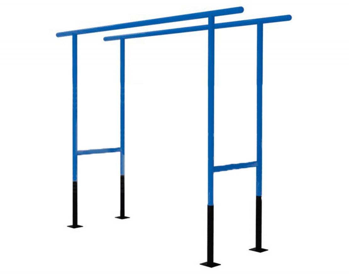 Брусья изготавливаются из металлической трубы, окрашенной полимерно-порошковой краской, устойчивой к воздействию неблагоприятных погодных условий и ультрафиолета.