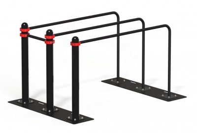 Спортивный комплекс представляет собой сборную металлическую конструкцию, состоящую из трех опорных столбов с площадками для крепления к пластинам основания и полусферическими заглушками, трех изогнутых поручней брусьев длиной L=1840 мм (диаметр поручня 42 мм), установленных на расстоянии друг от друга 600 мм и высотой 1090 мм. Между опорными столбами для большей жесткости установлен дополнительный поручень длиной 490 мм. Крепление элементов спортивного комплекса осуществляется хомутами, а опорные столбы закрепляются болтами с полусферической головкой. Разборная конструкция спортивного комплекса имеет высокую прочность и позволяет без особых навыков производить её монтаж и демонтаж. Все элементы покрыты атмосферостойкой порошковой краской, нанесенной методом электростатического напыления с последующим обжигом в печи.