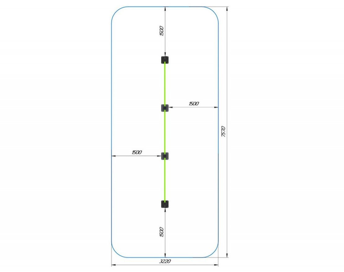 Занимаемая площадь с учетом зон безопасности и приземления: 7570 × 3220 мм