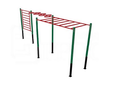 Комплекс изготавливается из металлической трубы Ø76мм и Ø 33мм, окрашенной полимерно-порошковой краской, устойчивой к воздействию неблагоприятных погодных условий и ультрафиолета.