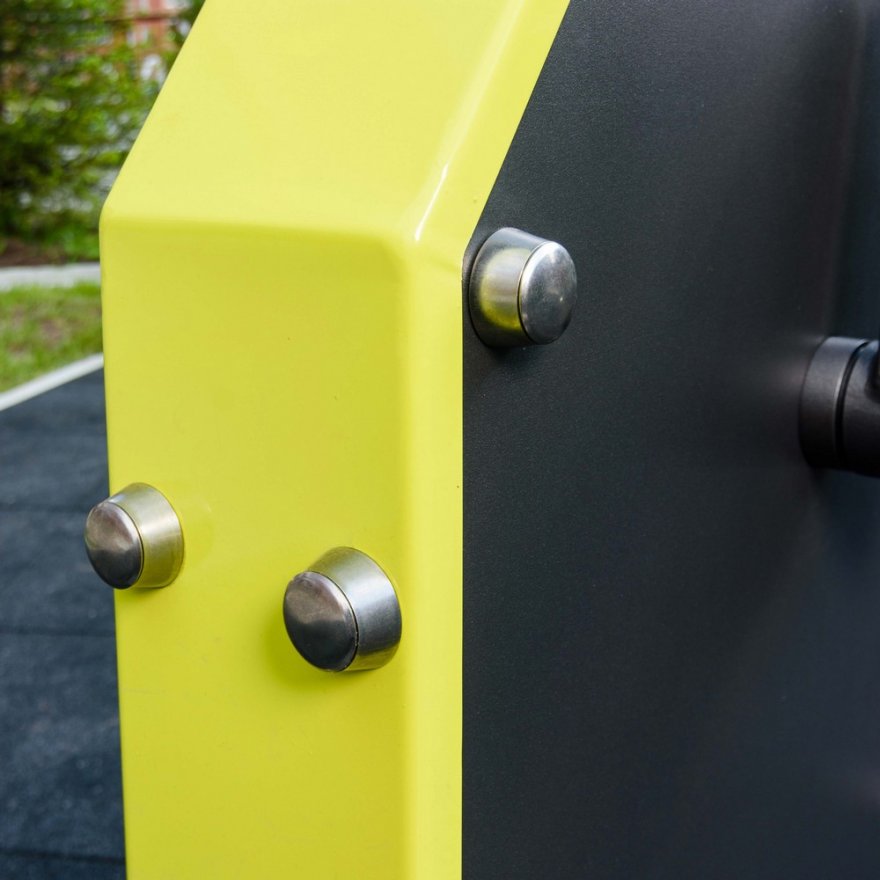 Надёжность и прочность соединений разъемных элементов тренажера, обеспечивается применением оцинкованного качественного крепежа.