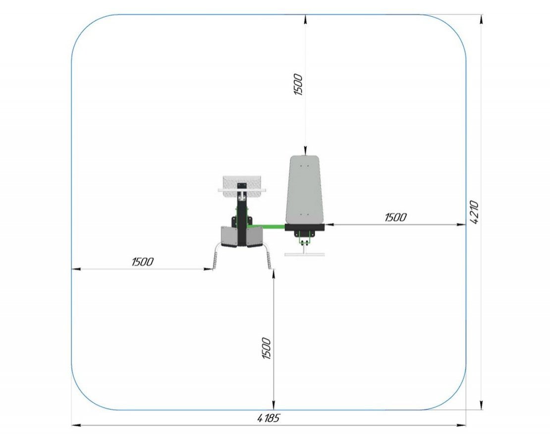 Занимаемая площадь с учетом зон безопасности и приземления: 4210 × 4185 мм