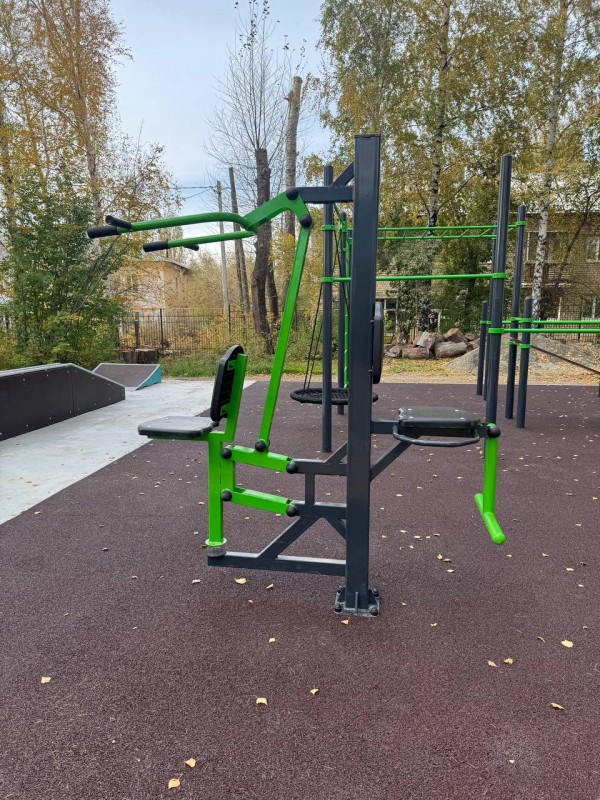 Тренажер "Вертикальная тяга" предназначены для тренировки трицепсов и мышц груди. Использование: сядьте на сиденье спиной к стойке, возьмитесь за параллельные или поперечные рукоятки и потяните на себя, затем плавно поднимите. При этом сиденье поднимется и опустится. Усилие от рукоятей передается вертикальному движению сидения, которому противодействует вес тренирующегося.