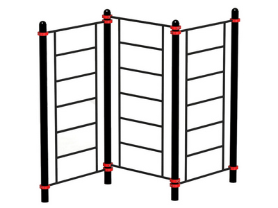 Шведские стенки предназначенны для использования под открытым небом. Выполнены из металлических компонентов, устойчивых к интенсивным нагрузкам. Высота несущих опорных стоек составляет 2600 миллиметров. Расстояние между ними – 1200 мм. Сама шведская стенка представляет собой совершенно независимую готовую конструкцию, прикрепляемую к столбам прочными хомутами. Ее высота – 2200 миллиметров. Шаг перекладин - 340 мм. В комплексе располагается три шведских стенки.