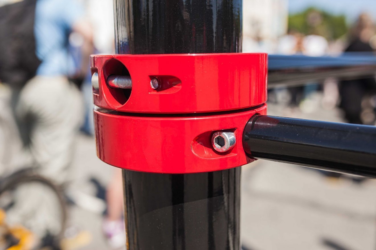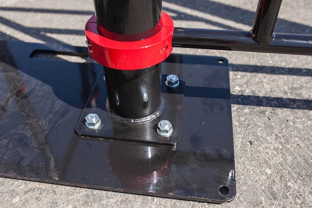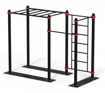 Спортивный комплекс представляет собой сборную металлическую конструкцию, состоящую из шести опорных столбов с площадками для крепления к пластинам основания и полусферическими заглушками, двух перекладин длиной L=1090 мм., а так же рукохода и шведской стенки. Крепление элементов спортивного комплекса осуществляется хомутами, что позволяет легко и быстро фиксировать их на нужной высоте, а опорных столбов к пластинам основания болтами с полусферической головкой. Разборная конструкция спортивного комплекса имеет высокую прочность и позволяет без особых навыков производить её монтаж и демонтаж. Все элементы покрыты атмосферостойкой порошковой краской, нанесенной методом электростатического напыления с последующим обжигом в печи.