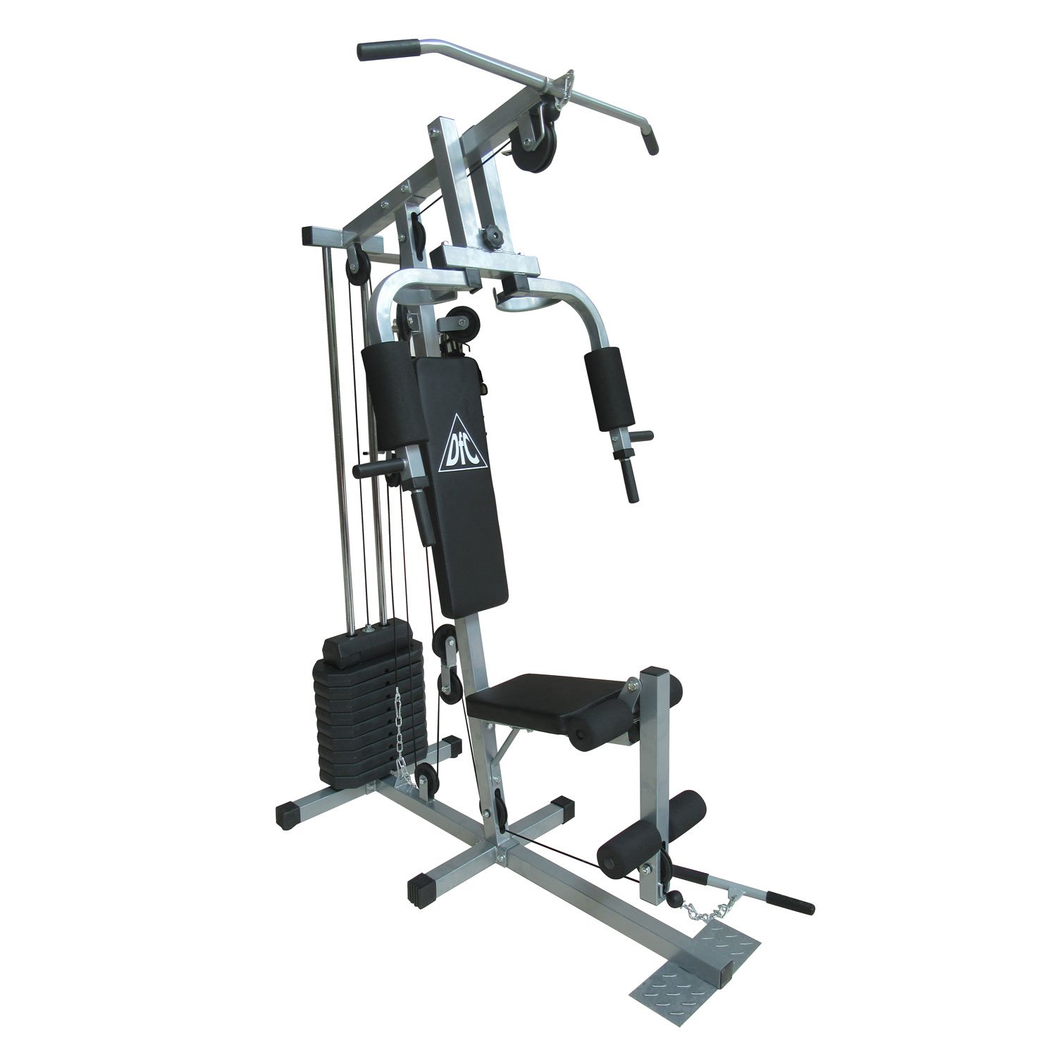 Cиловой комплекс позволяет выполнять упражнения на различные группы мышц: жим от груди, баттерфляй, верхняя и нижняя тяги, пресс - спина, разгибание ног.