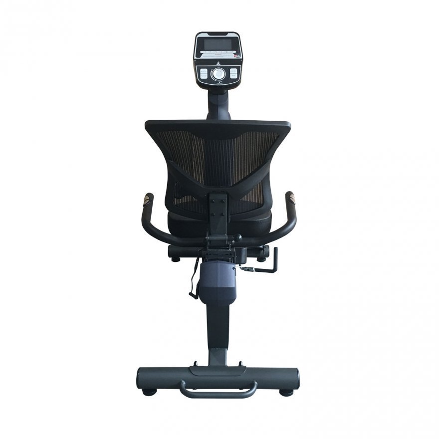 Бесшумная магнитная нагрузка с электроприводом. Регулировка нагрузки происходит с помощью компьютера. Программа тренировок состоит из 6 встроенных программ, каждая из которых включает в себя 16 уровней сопротивления. Дополнительно есть ручной режим и возможность создать собственную программу. Для тренировок с контролем пульса есть 3 программы с целевым значением (60, 75 и 85%) и целевой режим.