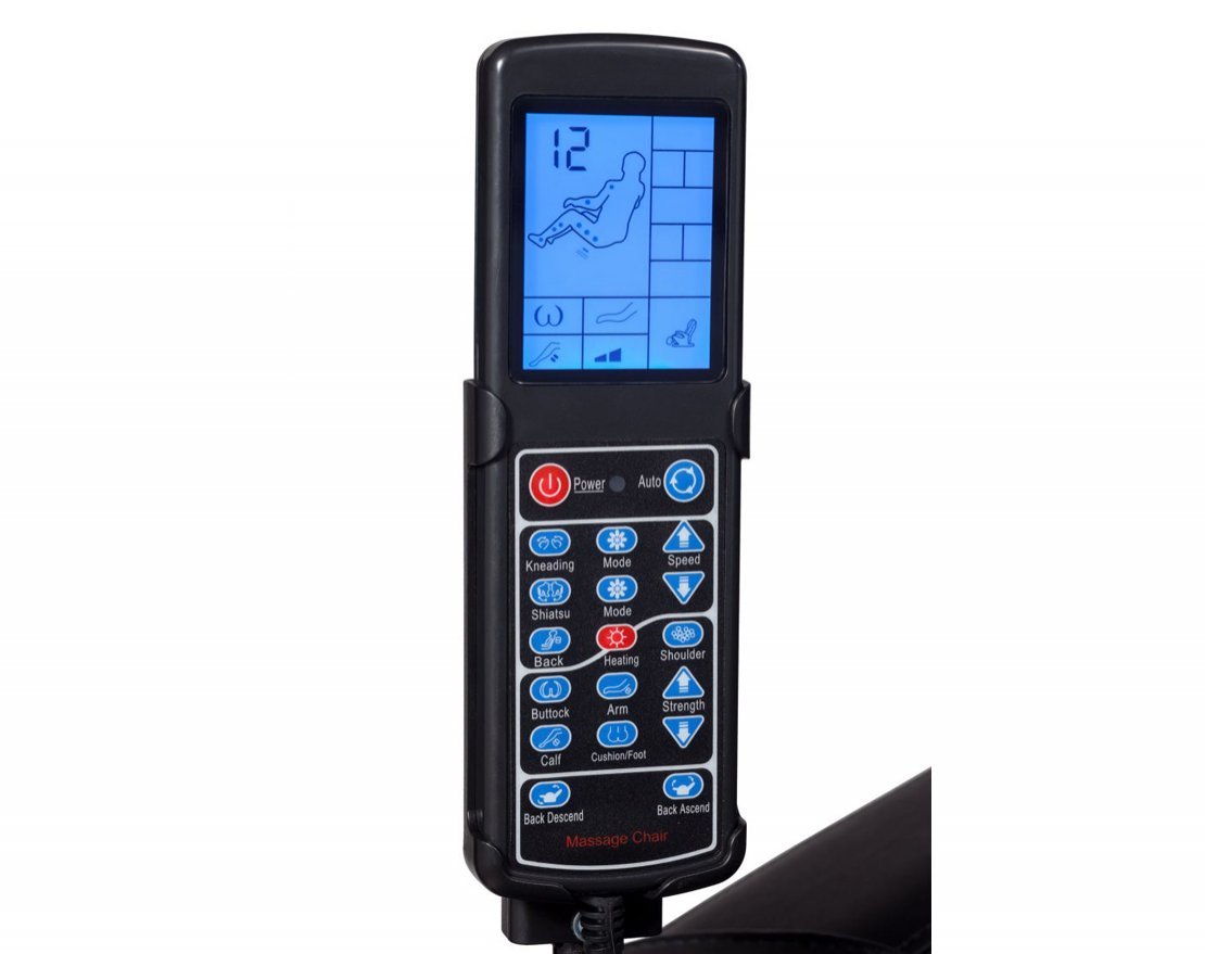 Кресло включает подвижные массажные группы роликов в поясничном отделе, спинном, шейном отделе, а также массажную группу роликов под ягодицами. Воздушно-компрессионый массаж голени, рук, ягодиц, плеч, головы.