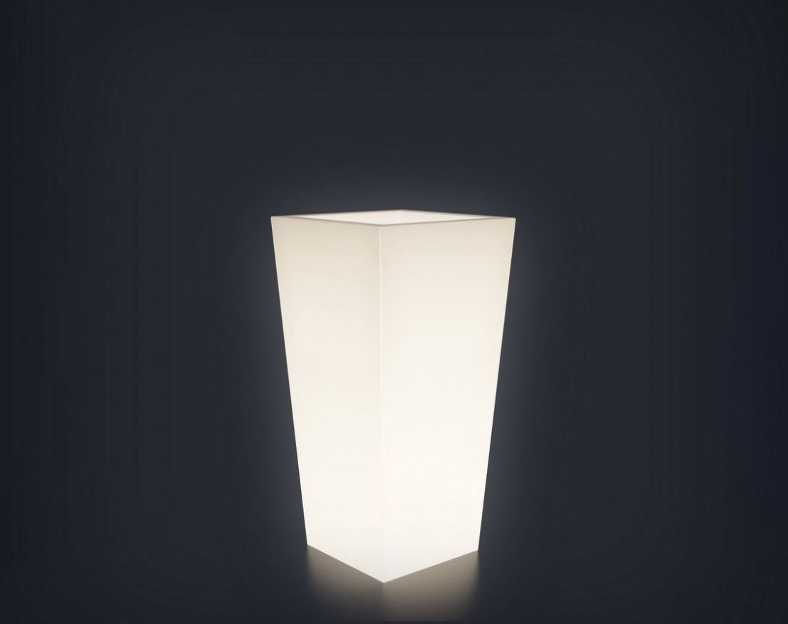 Кашпо-конус Quadrum с подсветкой – это декоративное изделие для высадки цветов и растений, оснащенное светодиодным элементом в нижней части корпуса. Землю можно засыпать прямо внутрь. Корпус спокойно выдерживает нагрузки от давления грунта и корней растений. В нем можно выращивать даже небольшие деревья.