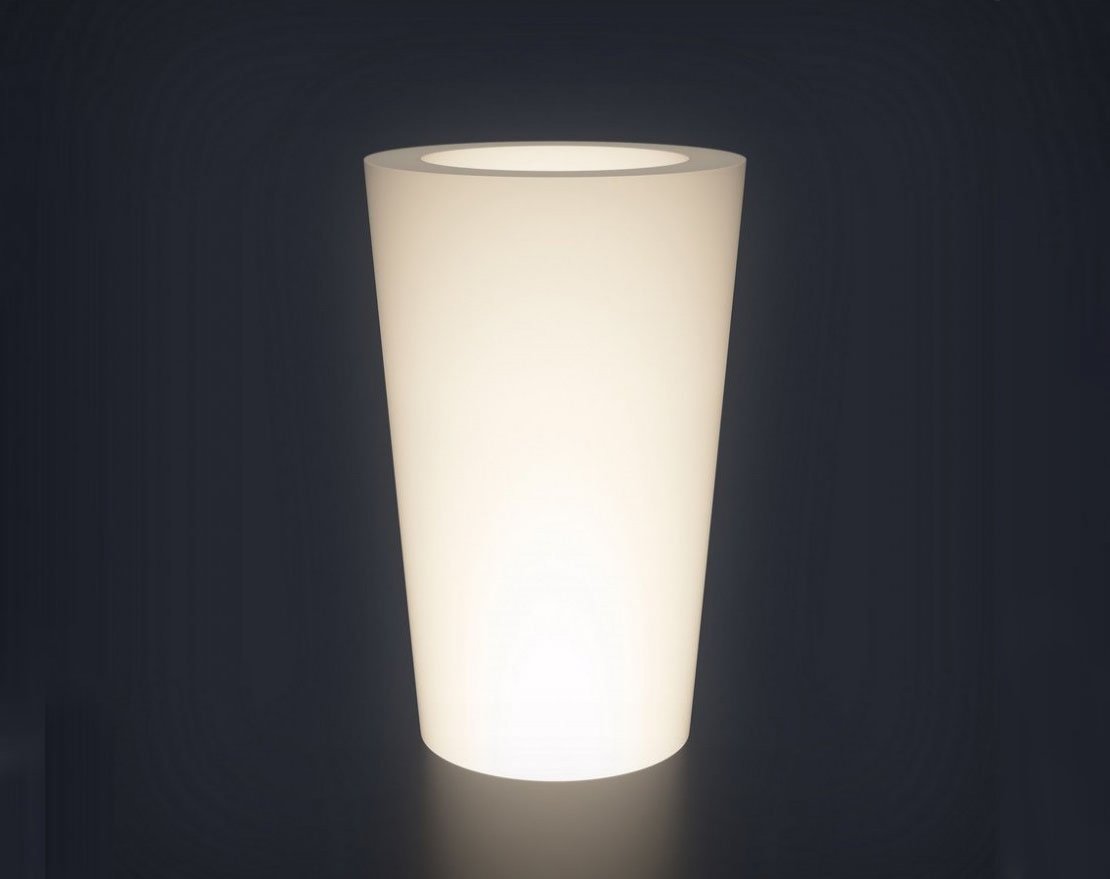 Корпус кашпо Cone выполнен из полиэтилена низкого давления. Этот прочный пластик может использоваться внутри помещений и на улице в любых климатических и погодных условиях. Пластик сохраняет свои свойства при температуре от -60 до +60 градусов Цельсия. Осадки, пыль и повышенная влажность воздуха не причиняют вреда светодиодному элементу – корпус изготовлен в соответствии со стандартом защиты IP 65. Кашпо можно располагать вблизи открытых источников воды.