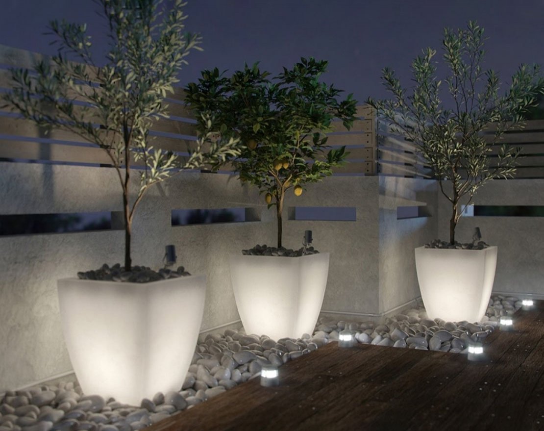 Кашпо Linea со светодиодной подсветкой изготовлено из полиэтилена низкого давления по стандарту защиты IP 65. Подсветка исходит от светодиодного элемента в нижней части корпуса и равномерно рассеивается через полупрозрачный пластик. Все электронные компоненты надежно защищены от влаги и пыли благодаря полной герметичности.